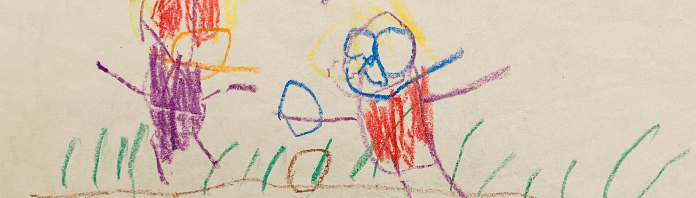 When my son, Andrew, was little, his religion teachers had the children draw pictures of what they were giving up for Lent. Andrew was quite unruly and hyper. He was always in trouble at home. All the time, he was hitting his brother, annoying his sister, and just in general, being a handful. So the picture that he drew for his teachers was him giving up the devil for Lent. It shows him vanquishing the devil with rocks. I’m not sure who the red eyed blonde is, but I’m pretty certain the purple figure is the devil and the figure in the sky is God.